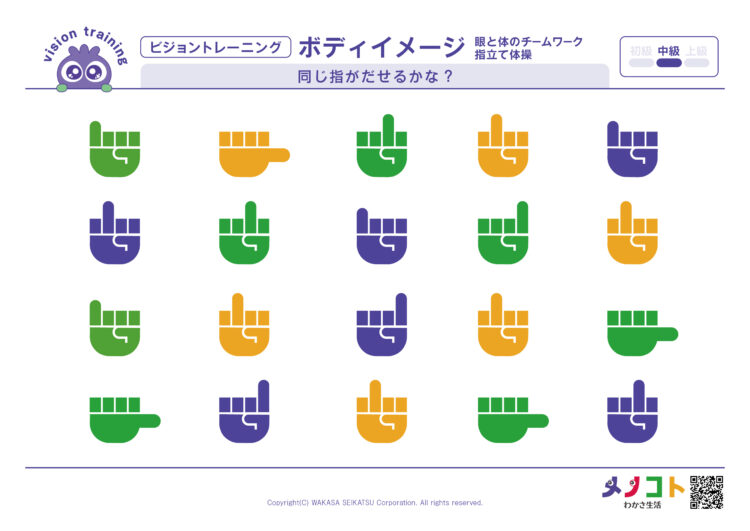 ビジョントレーニング眼と体のチームワーク中級「指立て体操-同じ指がだせるかな-」